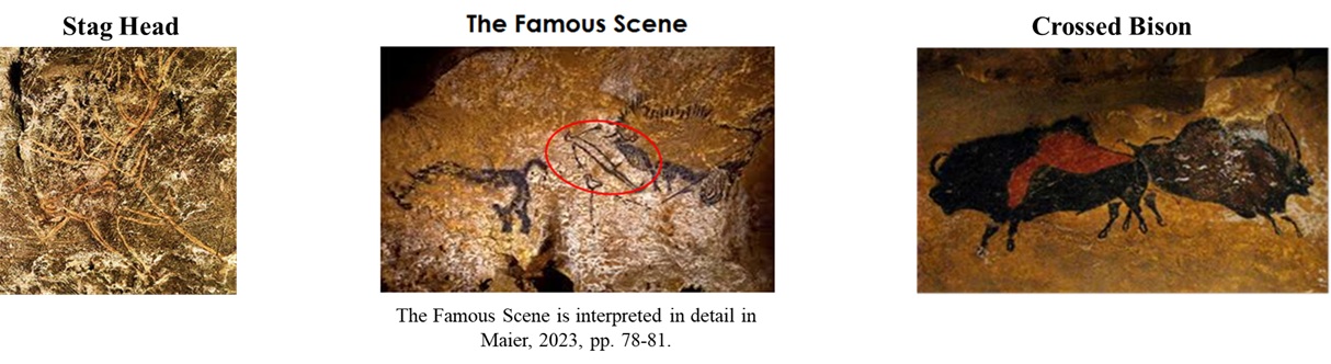 Then by studying a broad range of figures/panels it is clear that the shamans-artists who were the inspiration and creators of the artwork developed cognitive “conventions” to provide a structure that gave integrity to the artwork over the ages. I have identified seventeen conventions that apply across the cave art during this long period. Here are some examples: